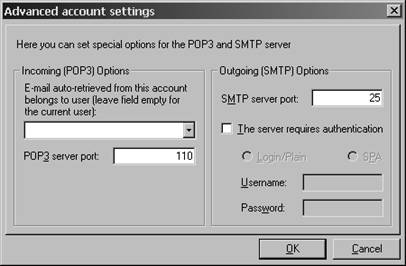The POP3 & SMTP addressing is already setup from the prior window. This is where you can setup additional e-mail accounts. More importantly, this is where you setup SMTP Authentication. You will not be able to send e-mail through our system without that.